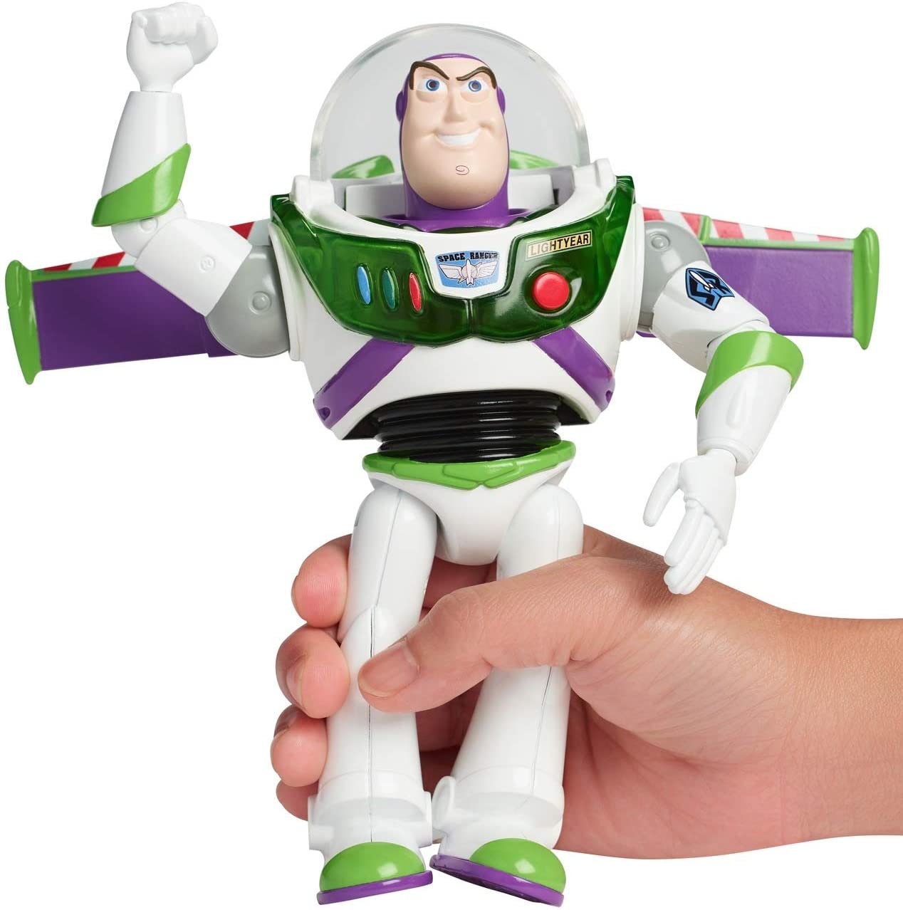 Take off to Infinity and Beyond with Disney/Pixar’s Toy Story 4 Buzz Lightyear. When you squeeze the Space Ranger’s legs, his armor lights up, his wings pop out and he assumes his iconic flying pose with blast-off sound!