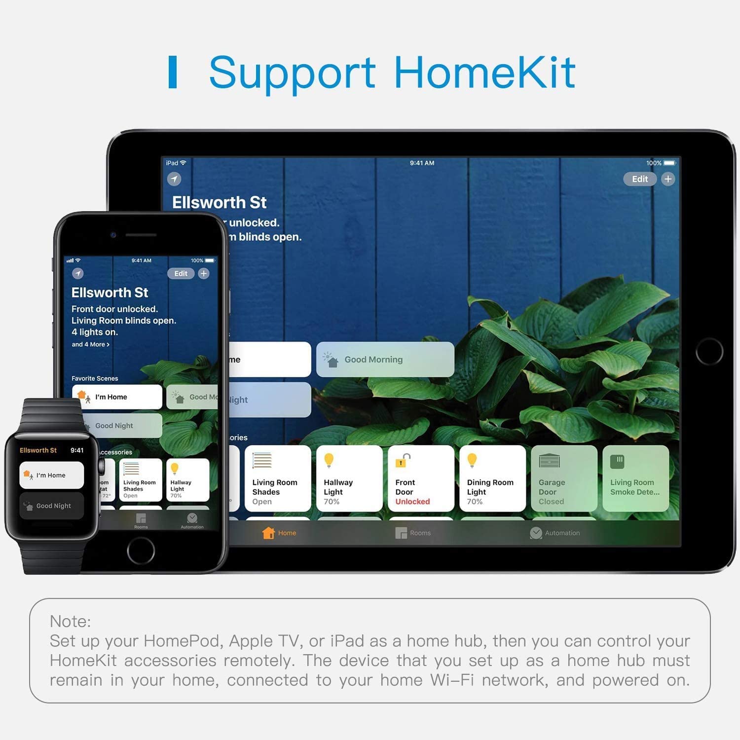Remote ControlControl your smart device remotely and freely. Please note that Homekit remote control requires iPad or HomePod etc. Please check Apple HomeKit website to learn more. |